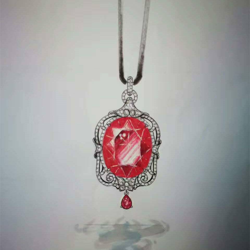 说明:主石为红宝石,副石为钻石。(顾客提供设计素材)